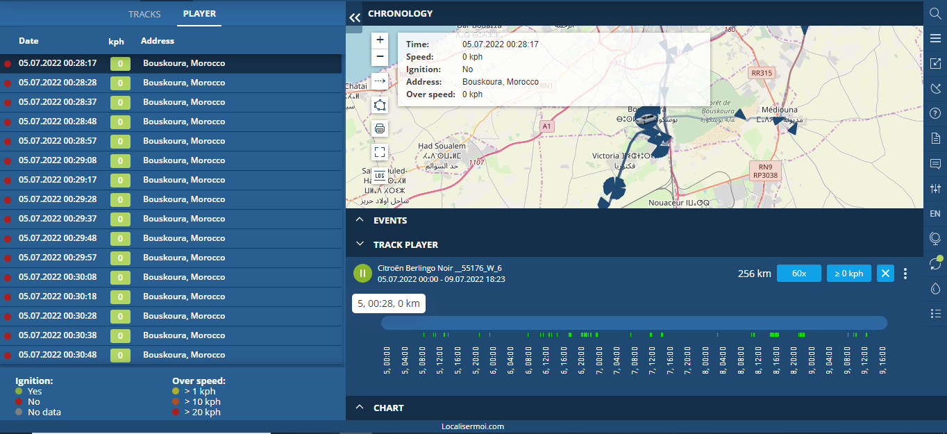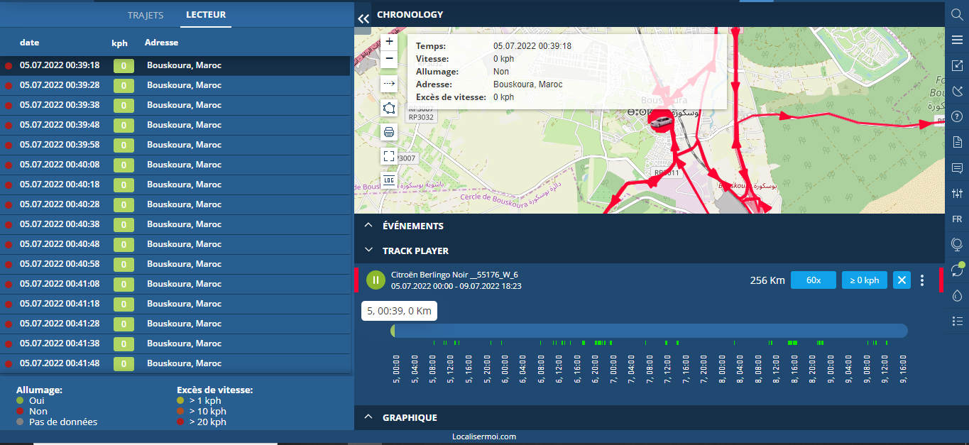 - Données du point de référence : allumage, date, vitesse actuelle, adresse
