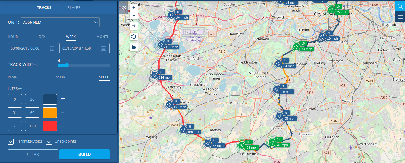 - Vitesse - construire une piste en utilisant les données de vitesse de l'unité.