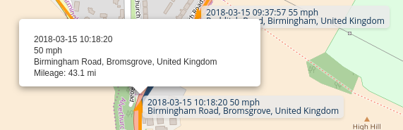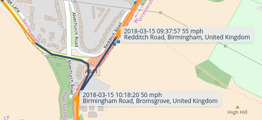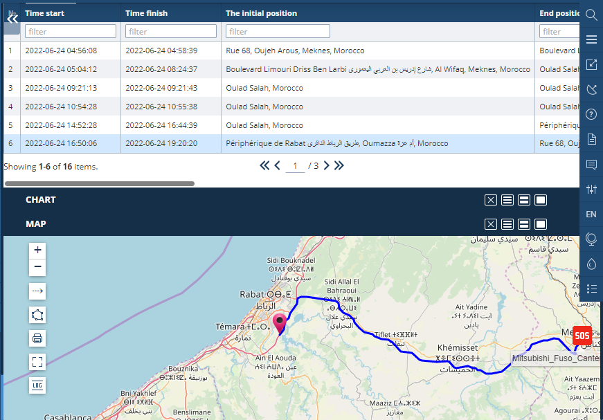 En cliquant, la trace du mouvement de l'unité est affichée pour les dernières 24 heures. La fonctionnalité permettant de travailler avec le suivi est décrite dans la sous-section Track.