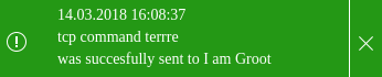 Après avoir cliqué sur le bouton Envoyer , la commande s'affiche dans la liste de la file d' attente de commandes , qui comprend les commandes à exécuter. Le processus d'envoi de la commande est affiché sous forme de messages supplémentaires de la forme suivante :