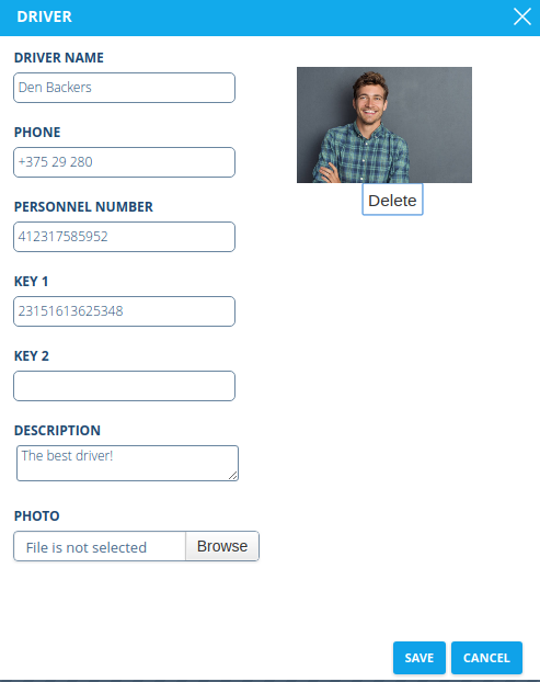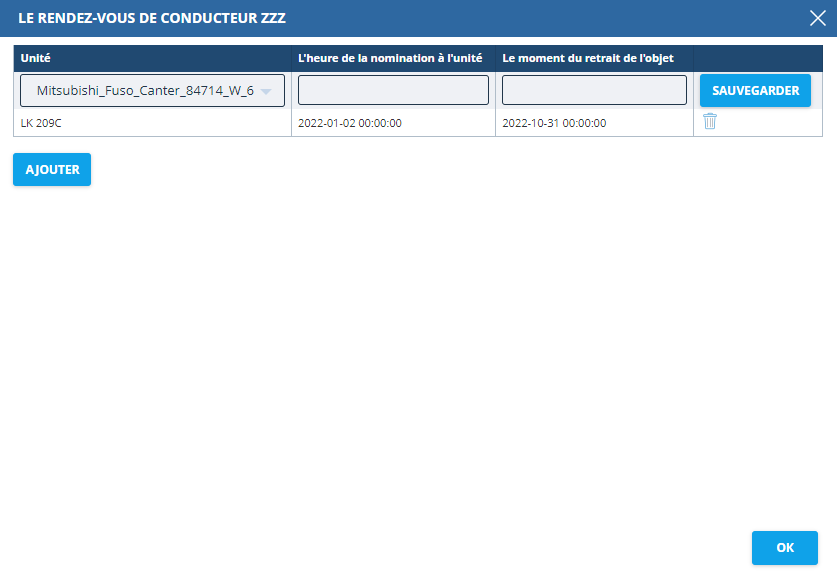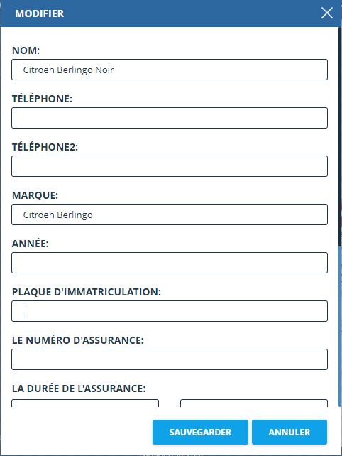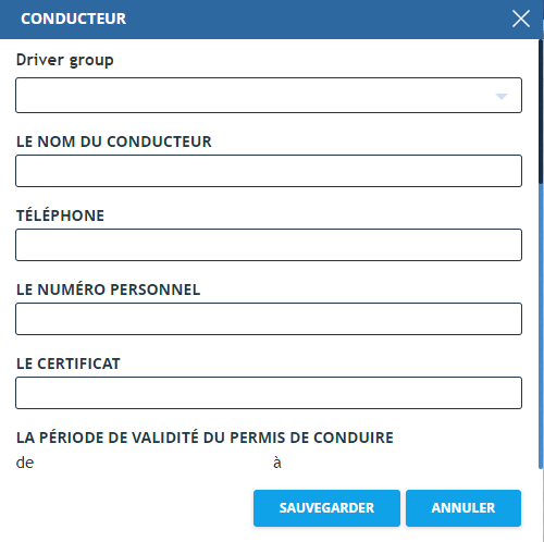Ce formulaire est utilisé pour communiquer avec le conducteur de l'unité actuelle. La communication est effectuée via l'application de suivi mobile.