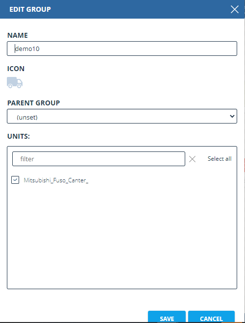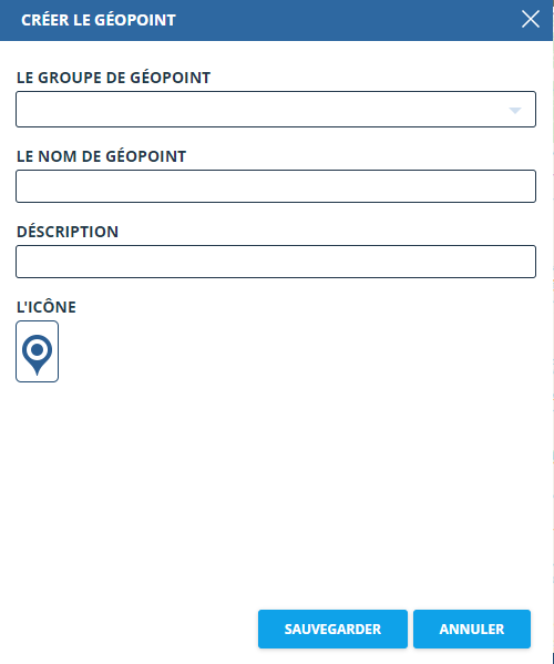 Chaque géozone doit appartenir à un groupe de géozones. Vous pouvez sélectionner un groupe existant ou en créer un nouveau. Pour créer un nouveau groupe, cliquez sur l'icône et entrez le nom du nouveau groupe.