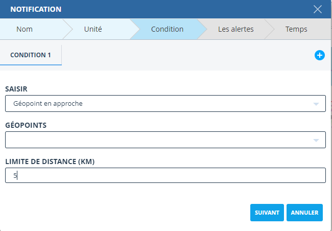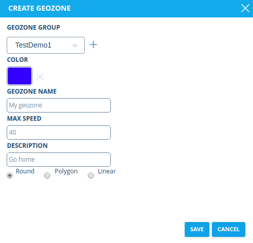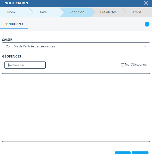 Pour créer une géozone, cliquez en face du bouton Géozones . En conséquence, le formulaire de création d'une géozone s'affichera à l'écran