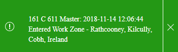 - Vitesse maximale – Vitesse maximale dans la zone géographique. Plus tard, cette valeur peut être utilisée pour configurer les notifications lorsque l'unité dépasse la vitesse maximale dans la zone géographique actuelle;