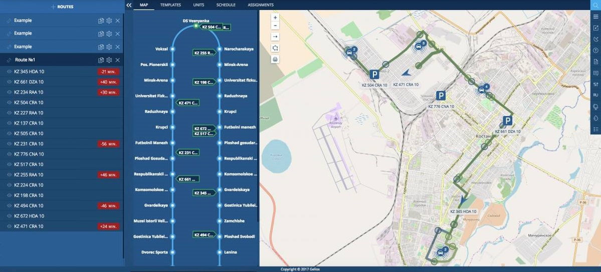 L'itinéraire du mouvement de l'unité, projeté sur la carte, est une ligne construite selon les coordonnées du système de suivi. Dans ce cas, la carte est positionnée de manière à ce que l'ensemble du traces soit visible.