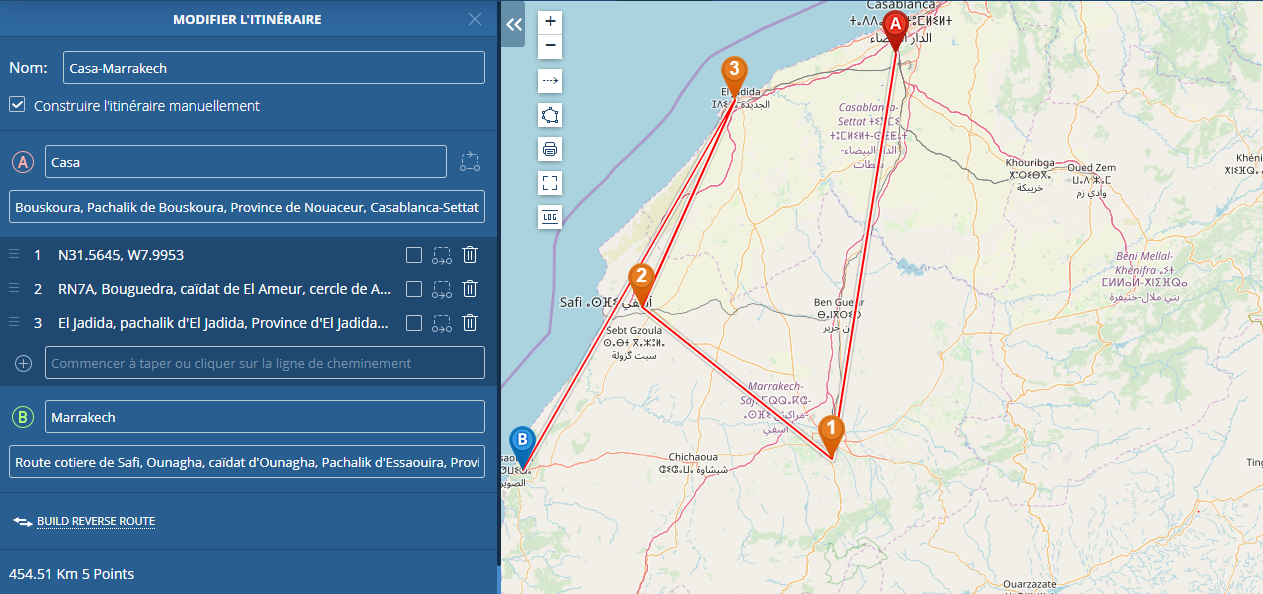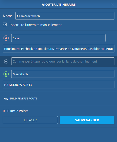 - Construire une piste – Création d'une piste. Pour une description détaillée de la fonction, voir la sous-section Pistes;