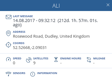 - Coordonnées - Coordonnées du dernier emplacement de l'unité.