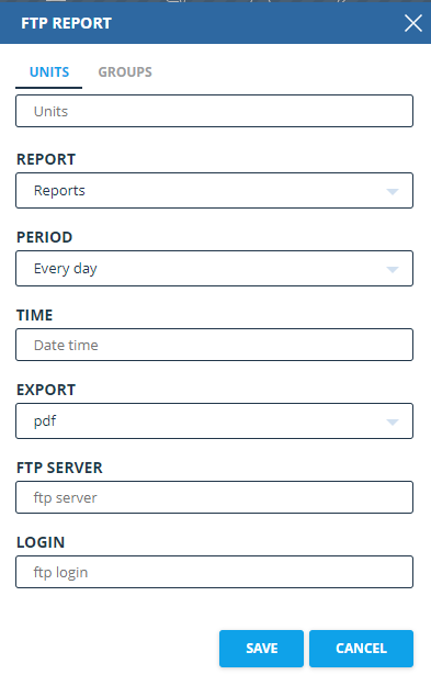 Ce formulaire permet de visualiser les fichiers envoyés depuis le traceur mobile installé sur l'unité en cours, ainsi que divers types d'équipements vers le système de surveillance. Après avoir transféré les fichiers sur le serveur, vous pouvez les télécharger sur votre ordinateur.