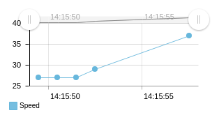 - 4. Affichage graphique des informations des capteurs. Par défaut, les données sont affichées pour les cinq dernières minutes. Si le formulaire reste ouvert, le graphique est complété par des données entrantes.