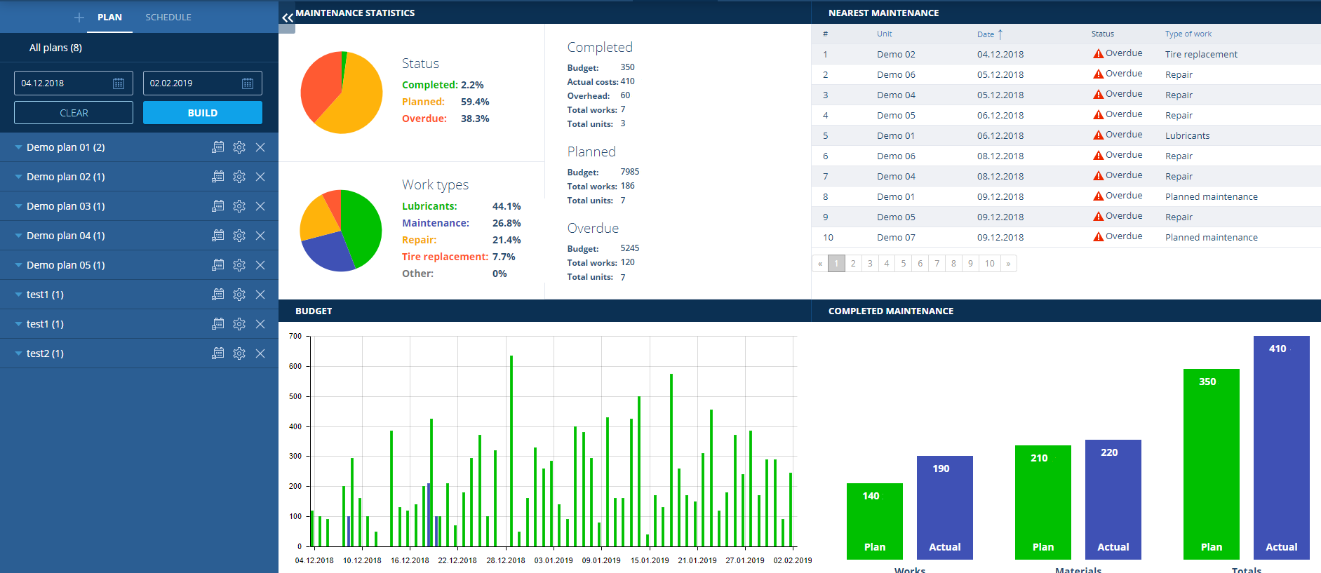 Après avoir spécifié toutes les données sur le dernier entretien, appuyez sur le bouton « Enregistrer » pour terminer la création du plan.