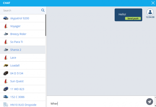 Pour une notification supplémentaire au conducteur d'un nouveau message, cliquez sur le bouton Envoyer . En cliquant sur le bouton, une notification Push sera envoyée à l'appareil.